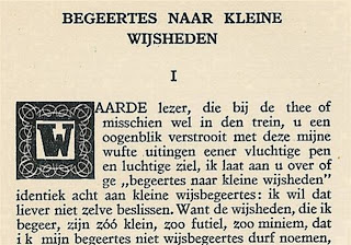 1. Titel en eerste tien regels, met sierletter, van één der Korte Arabesken uit 1911 door Louis Couperus.