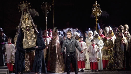 Afbeelding: Massale scène in Tosca ; versie van de The Met in New York in april 2010.